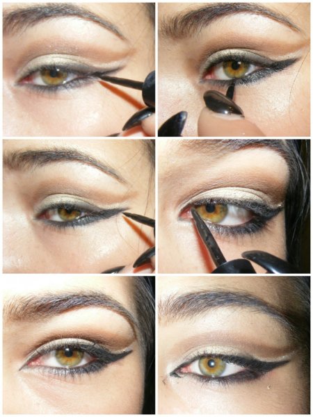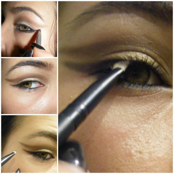 Én a még extravagánsabb kinézet elérése érdekében meghúztam a belső szemzugomnál is. Ha közel ülő szemeid vannak, inkább hagyd ki ezt a lépést, mert optikailag még közelebb hozza a szemeket egymáshoz. Csak a belső sarokba húztam, majd a vízvonalam formáját követve csináltam belőle egy kis háromszöget.
